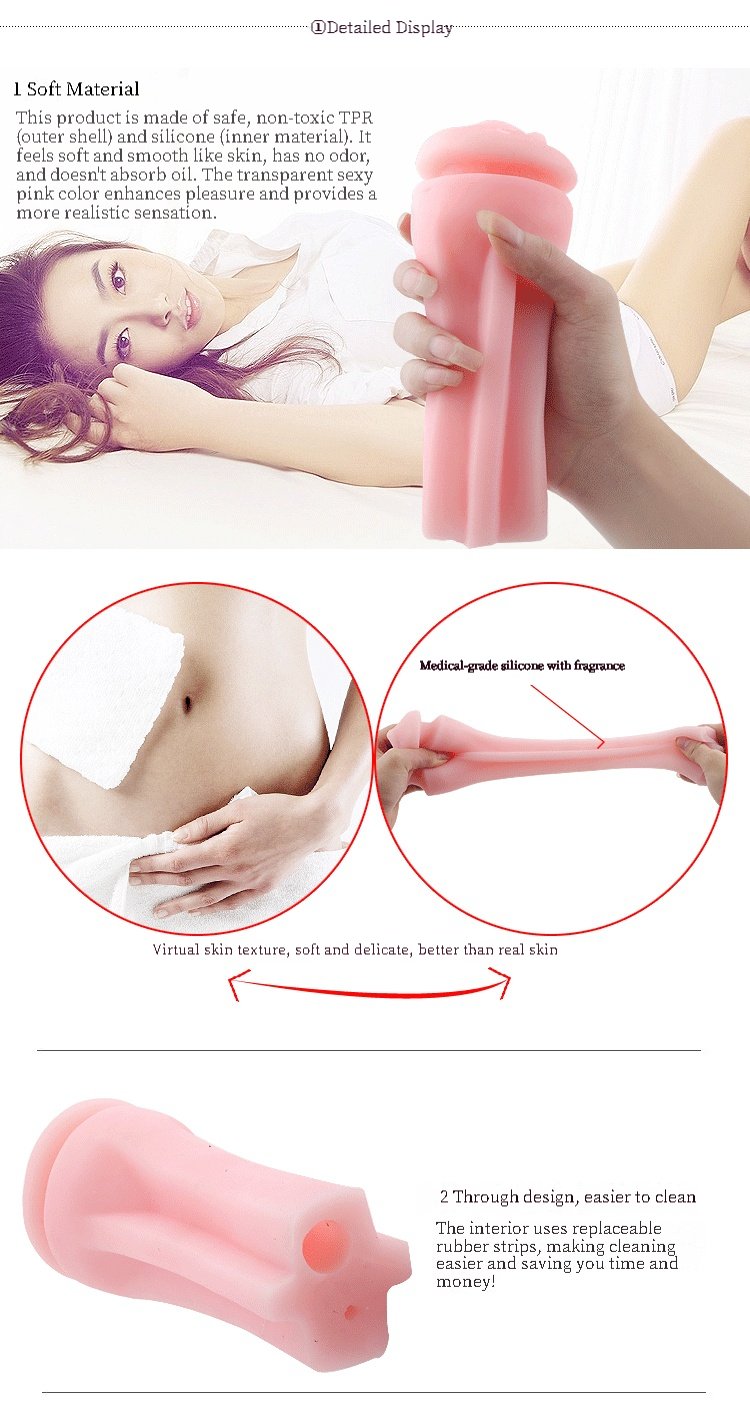 Manual suction and squeezing male masturbator, portable pocket-sized clitoral massager with 3D clitoral multi-zone realistic texture channel, oral sex training sex machine.