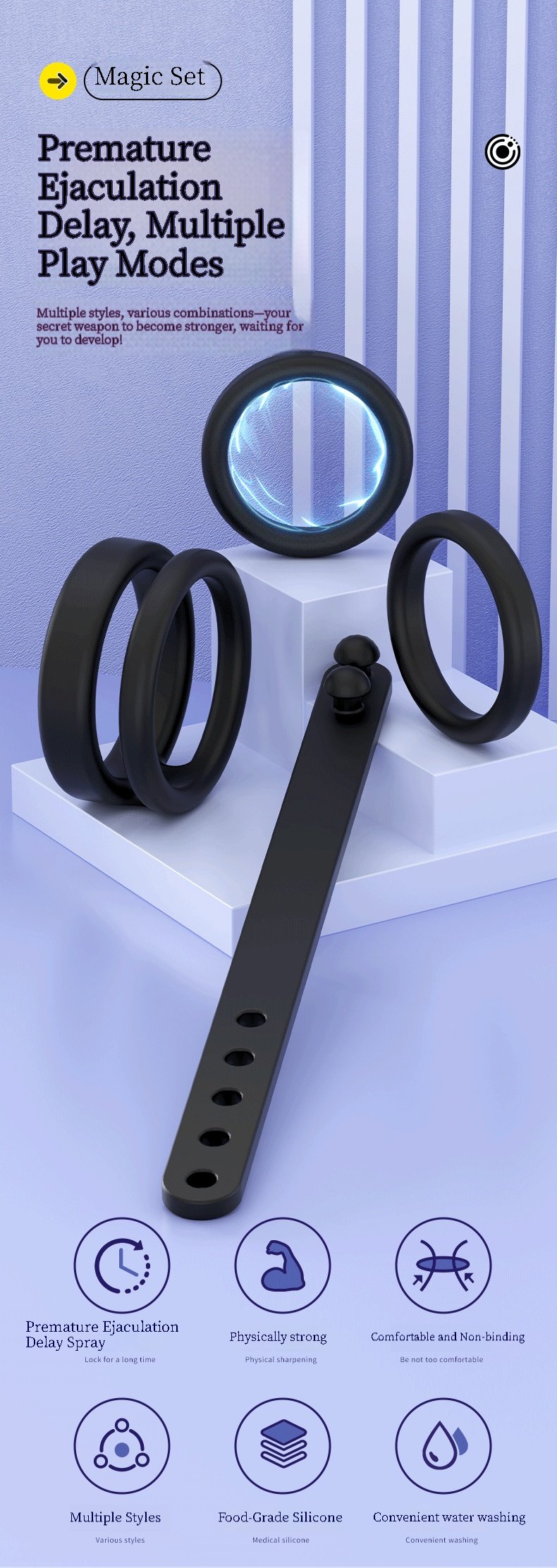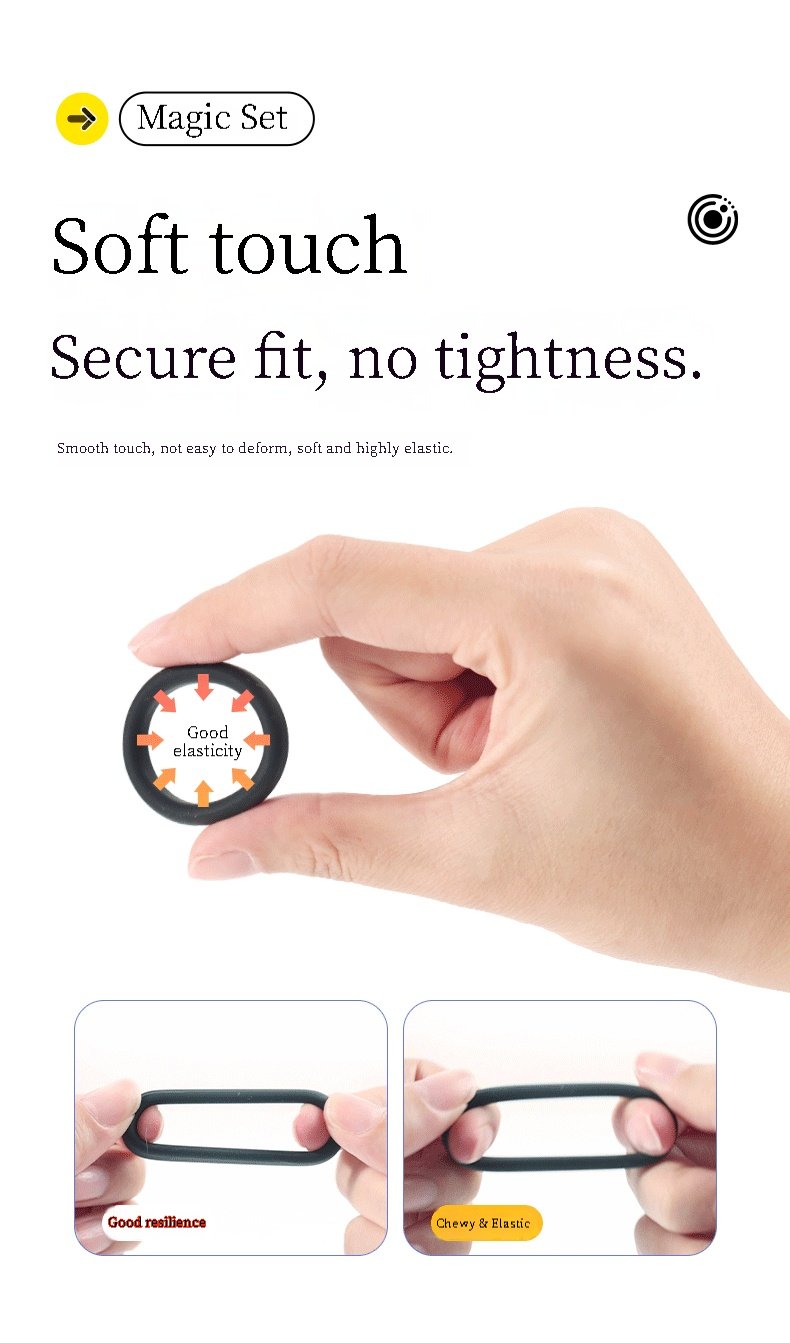 Adjustable Penis Rings for a Perfect Fit: This pleasure ring enhances your size and sexual performance. Say goodbye to ill-fitting penis rings; silicone penis rings allow you to choose the perfect size and style for you. Use the adjuster elastic band at any time for just the right amount of support.