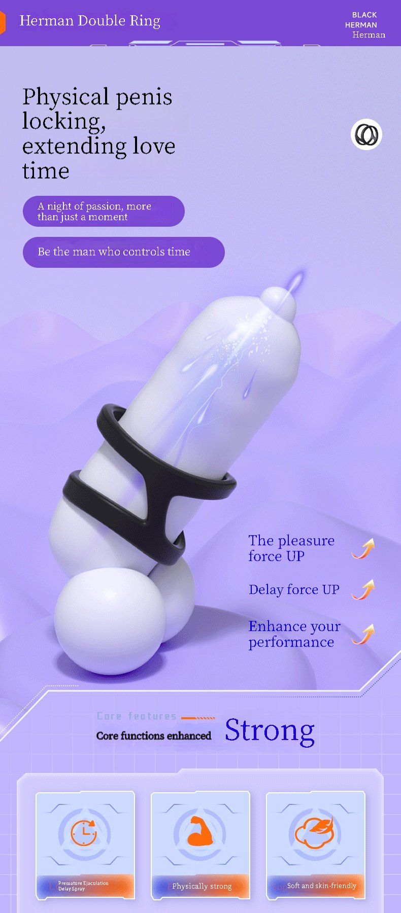 [Unique Design] The 3-in-1 cock ring offers an all-in-one solution. Its ergonomic design ensures a secure and proper fit in the right places.