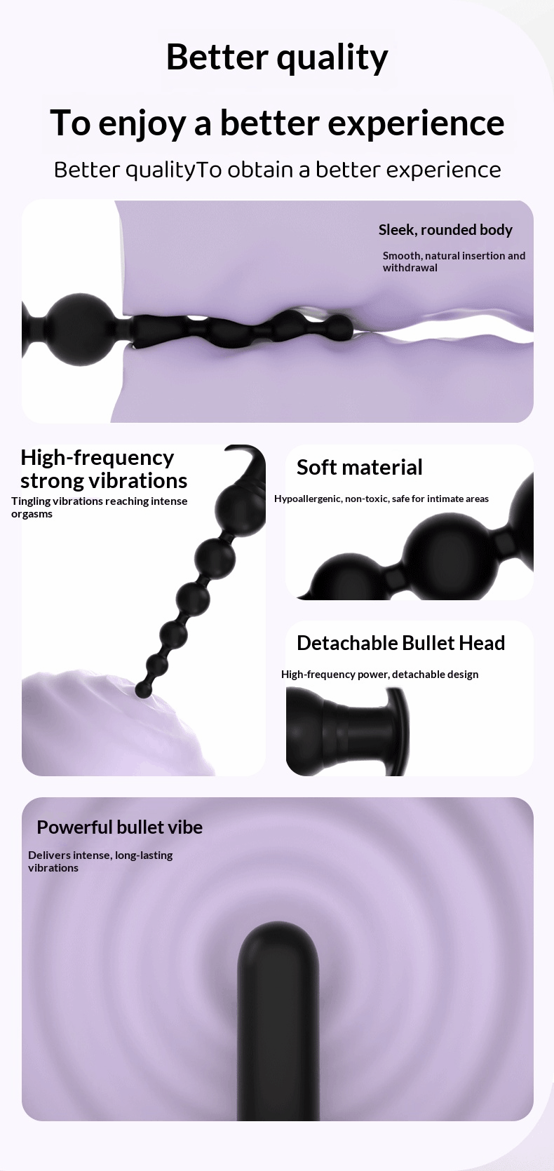 Anal Vibrating Beads: A silicone electric anal plug with nine vibration modes, suitable for both men and women. Features a flexible design, silicone material, and a pull-ring for easy removal. Ideal for couples.