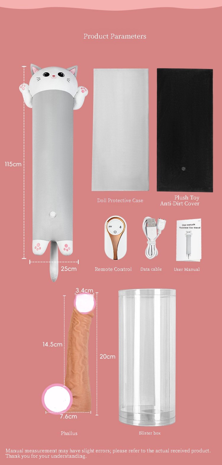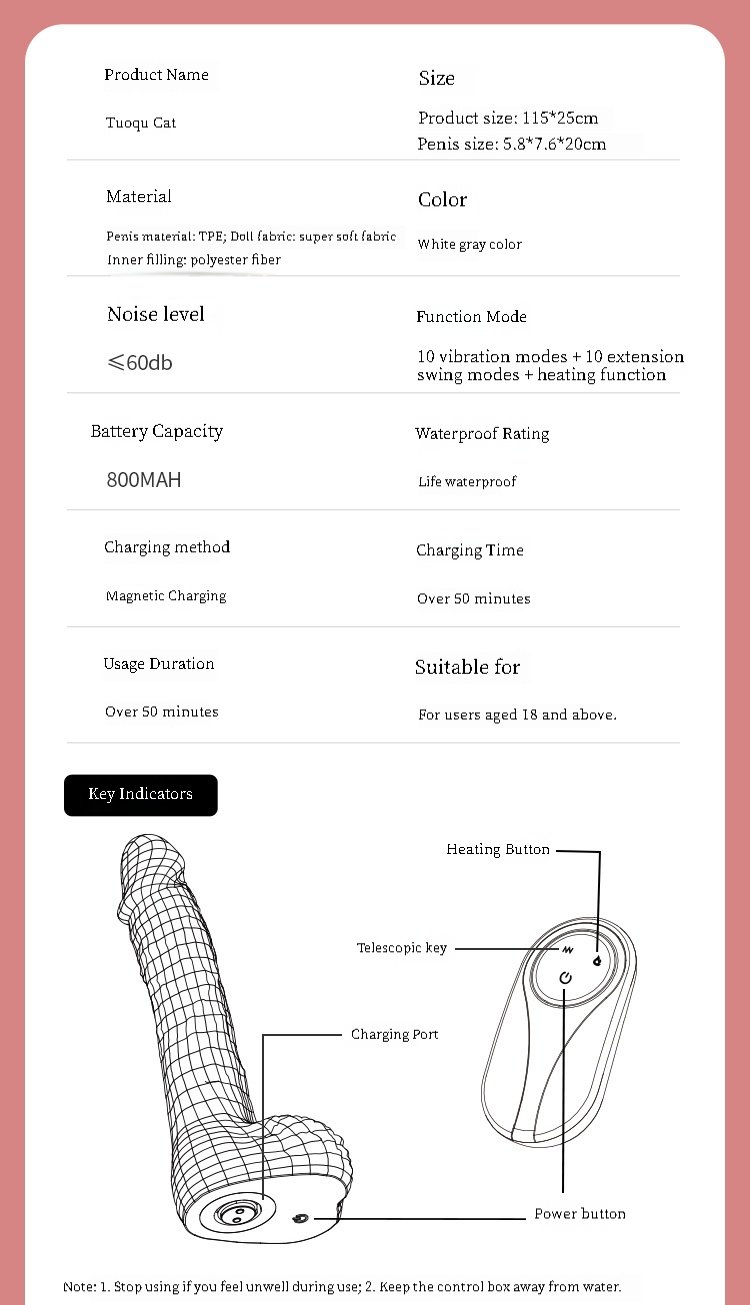 Cute Plush Design: This sex toy features a charming cat design and doubles as a soft and comfortable plush pillow, providing both comfort and cuteness while helping you achieve endless orgasmic experiences. Multiple styles are available to meet your individual needs.
