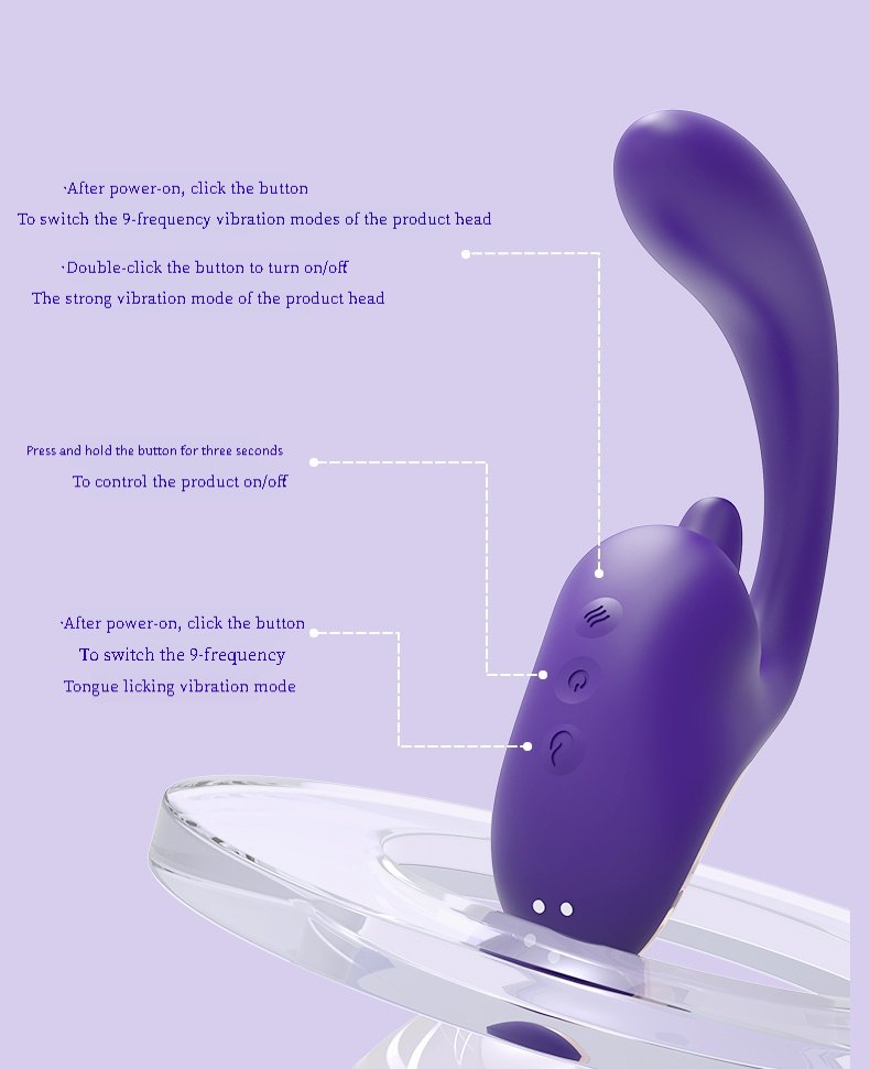 On/Off Function: Press and hold the power button for 3 seconds to turn on/off. Short press the mode button to switch frequencies. The handheld vibrator will automatically stop working when plugged in for charging.