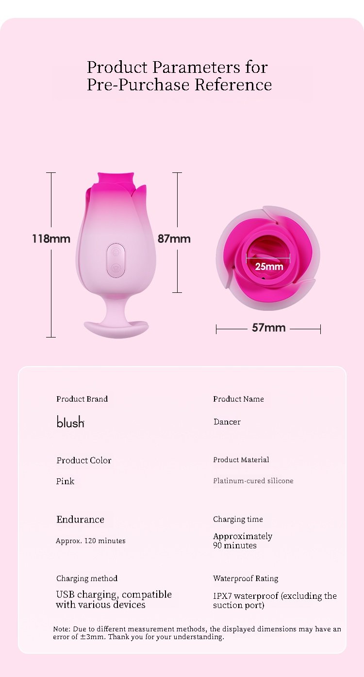 Easy to Use: Our vibrator features an intuitive and easy-to-use design, with all functions usable simultaneously or individually. Its user-friendly button interface and light feedback make operation effortless. The lightweight and compact size allows for one-handed operation, allowing you to easily adjust the angle of the circular vibrator while keeping your other hand free. Enjoy our rose-shaped suction sex toy and experience dreamy, ultimate pleasure.