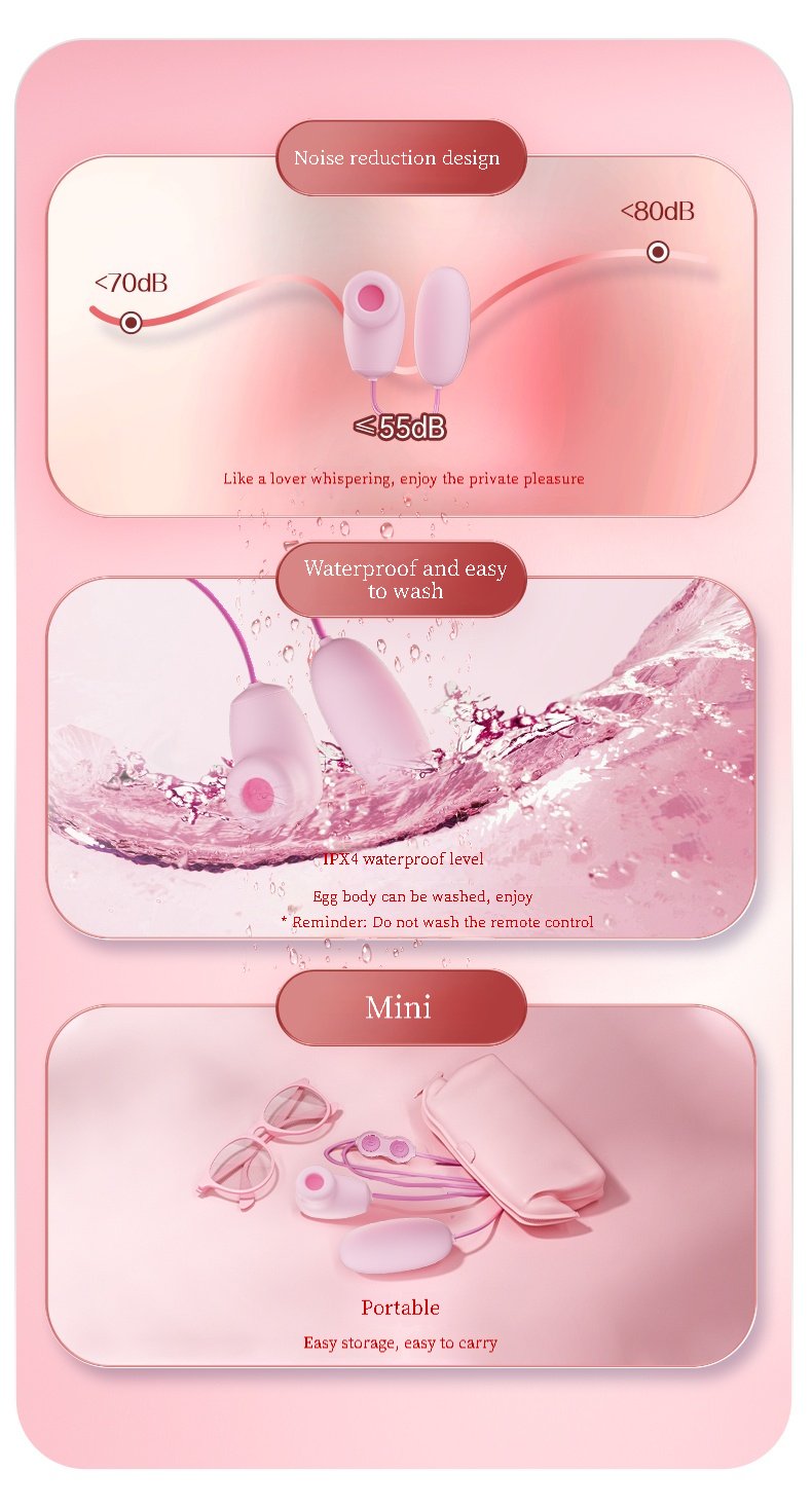 Skin-Friendly Silicone Material, IPX6 Waterproof, Silent Design: Made of skin-friendly silicone material, it feels soft and comfortable to the touch. IPX6 waterproof rating makes it easy to clean (rinse with water, do not immerse in water). The low-noise motor (≤47 decibels) ensures you enjoy private and worry-free moments.