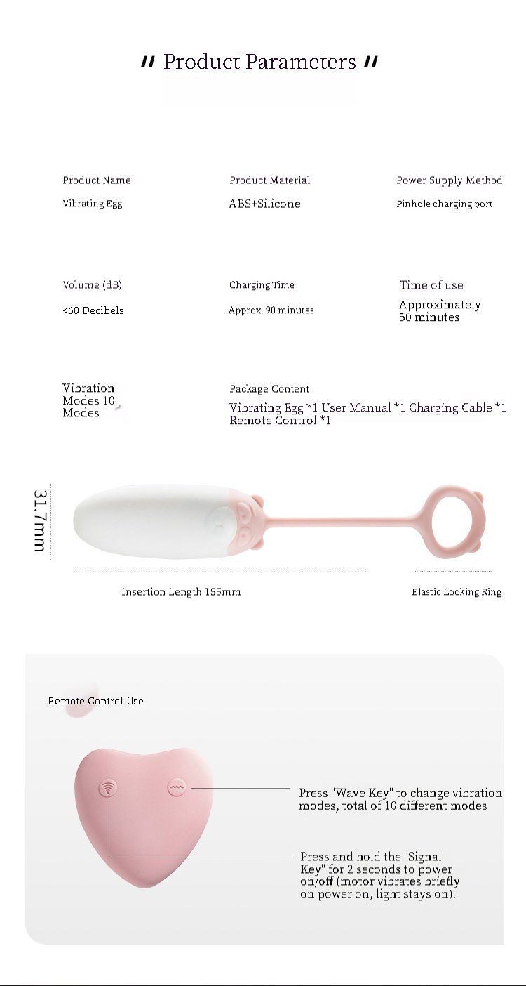 Remote control vibrating egg, wireless remote control, rechargeable, 10 vibration frequencies for pleasure, adult sex toy vibrator, suitable for women or couples.