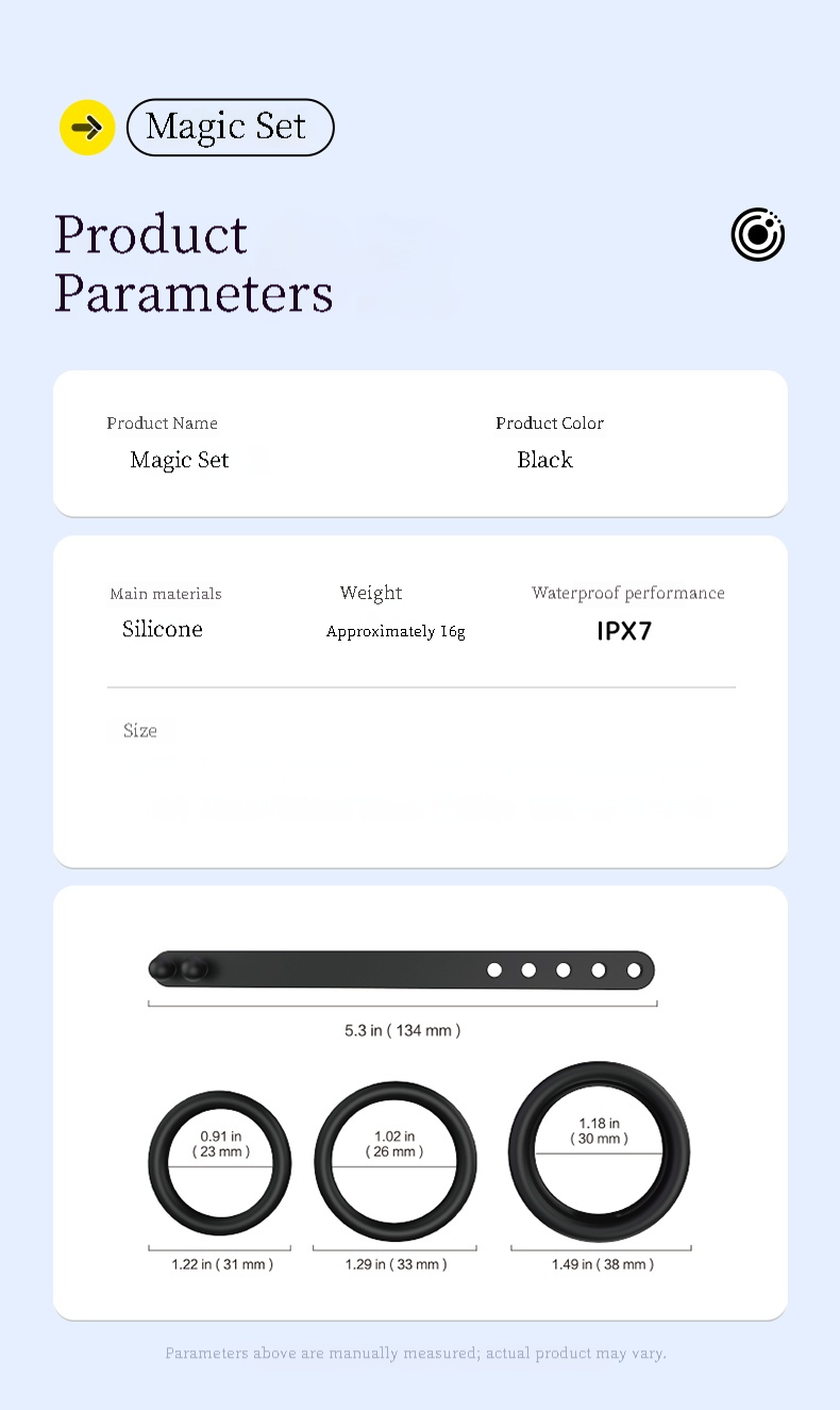 Adjustable Penis Rings for a Perfect Fit: This pleasure ring enhances your size and sexual performance. Say goodbye to ill-fitting penis rings; silicone penis rings allow you to choose the perfect size and style for you. Use the adjuster elastic band at any time for just the right amount of support.