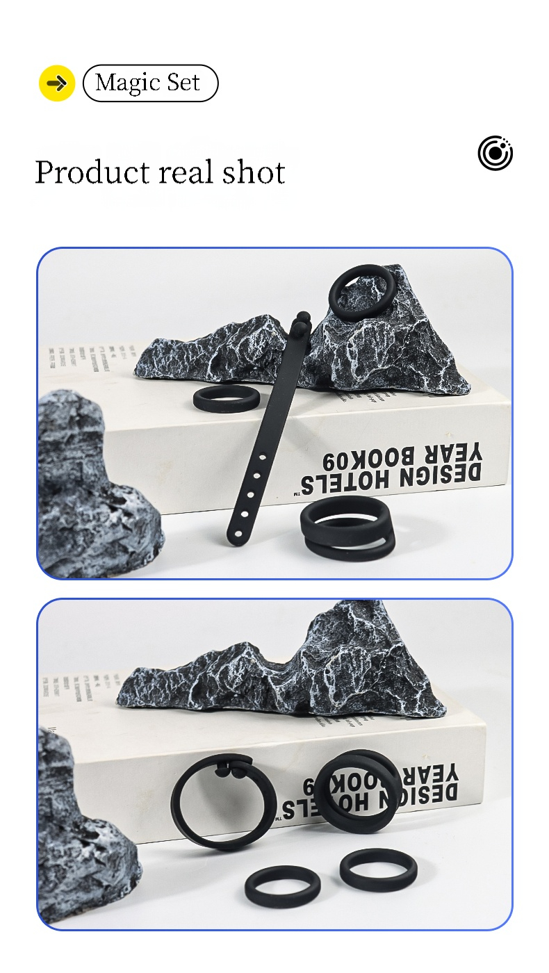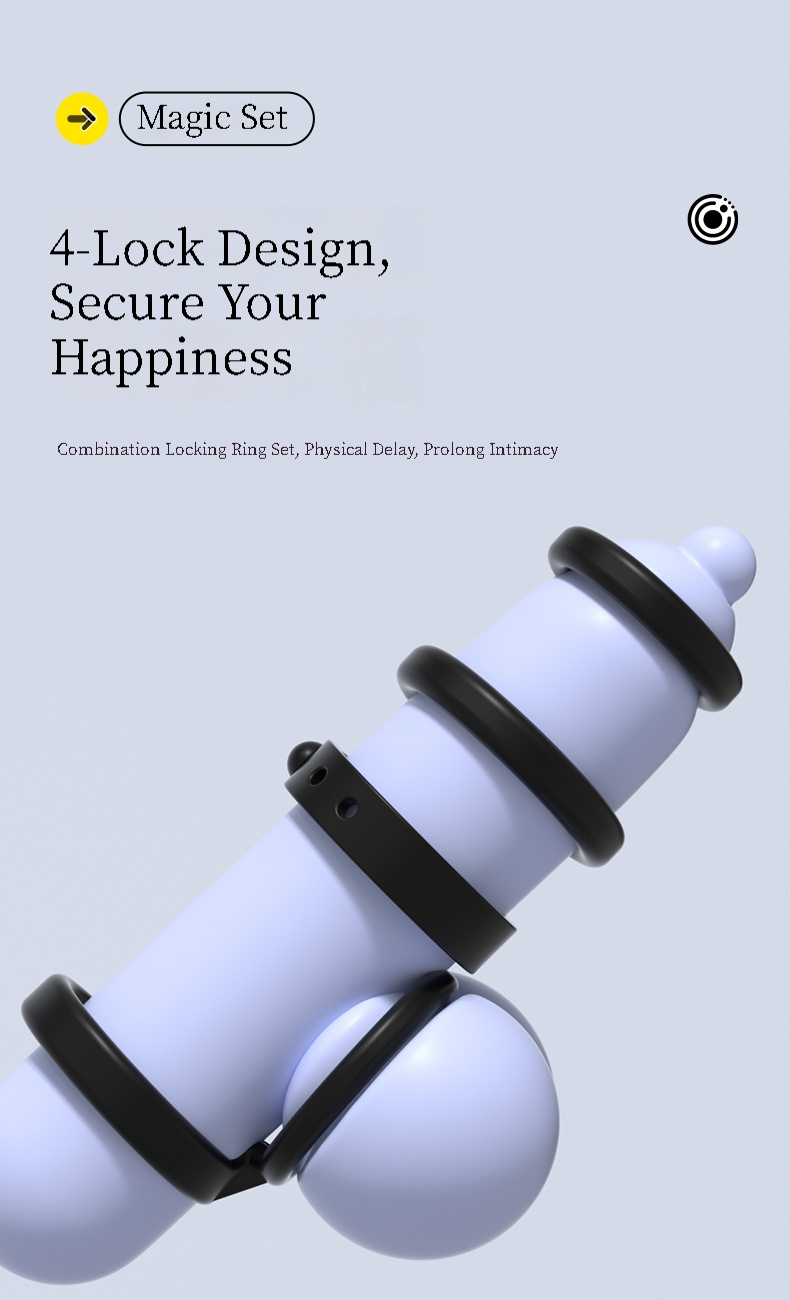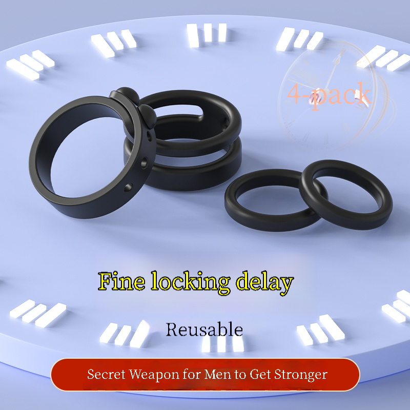 4-Piece Penis Ring Set for All-Night Erection: This tight and firm erection ring set includes 4 male penis rings, allowing you to wear as many as needed! Place two, three, or even more rings on your penis. The extra rings help increase blood flow to the penis, increasing girth and length for your ideal size. They also enhance erection hardness, leading to a more pleasurable sexual experience.
