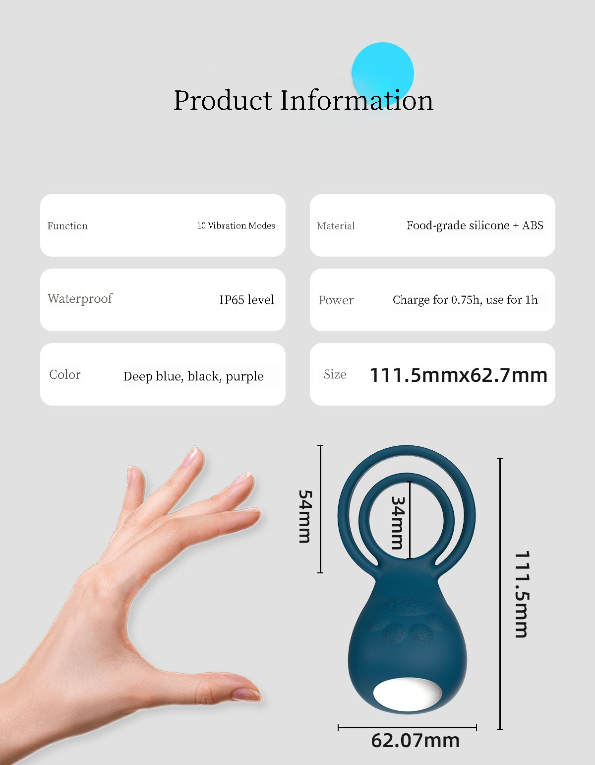 Cat Paw Vibrating Egg Locking Ring (Dark Blue) Double Ring Locking Ring High Frequency Strong Vibration Male Locking Ring
