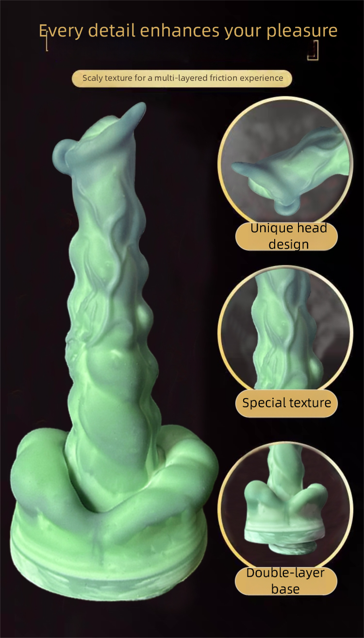 This realistic dragon-shaped dildo, with a total length of 9.65 inches and an insertable length of 6.7 inches and a penis diameter of 1.61 inches, is a must-have for achieving orgasm. This canine-shaped dildo features lifelike tentacles, a prominent knot, unicorn texture, and a pointed glans, resembling a combination of a dog knot dildo and a tentacle sex toy.