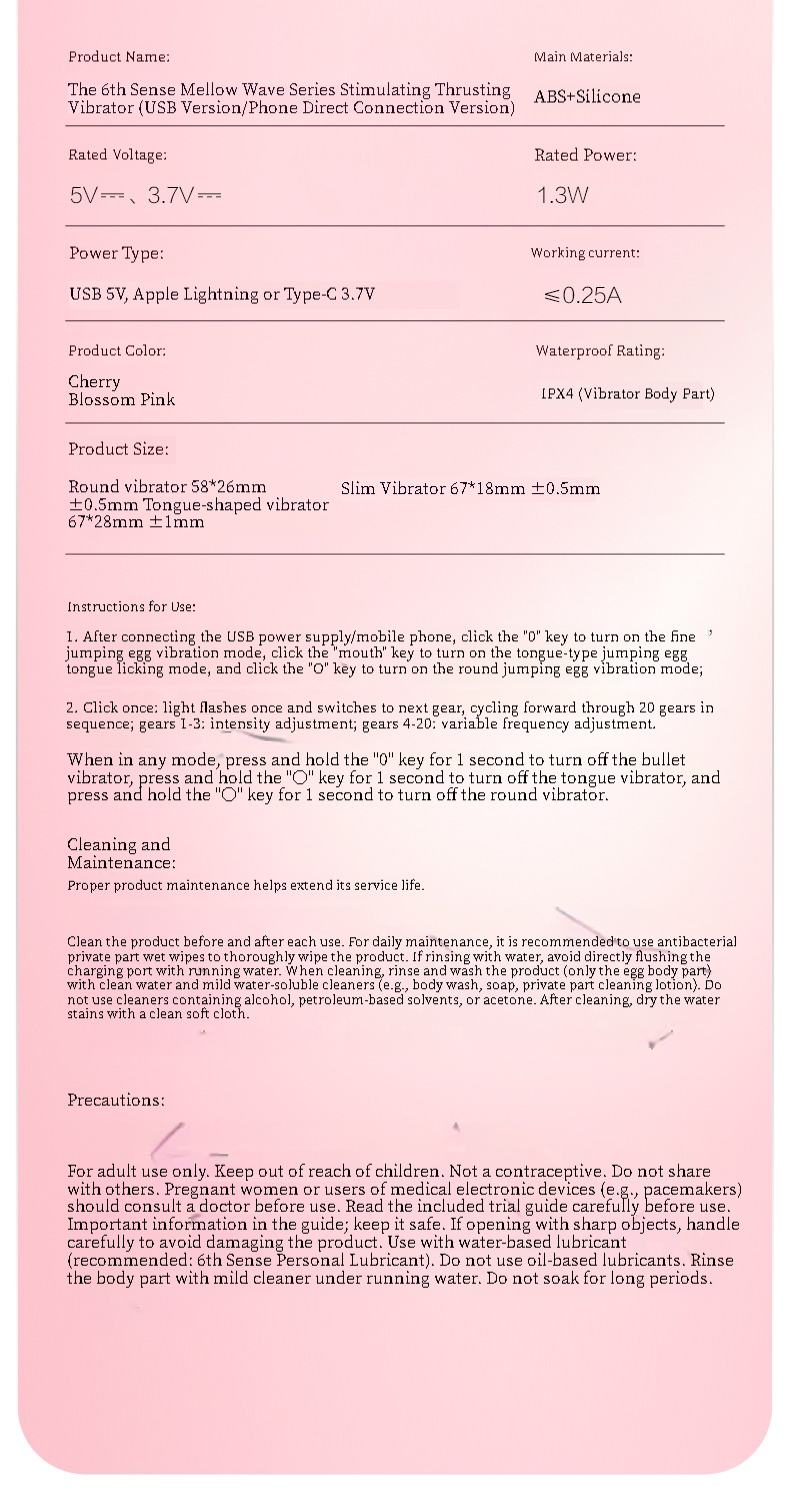 Skin-Friendly Silicone Material, IPX4 Waterproof, Silent Design: Made of skin-friendly silicone material, it feels soft and comfortable to the touch. Easy to clean (rinse with water, do not immerse in water). The low-noise motor (≤47 decibels) ensures you enjoy private and worry-free time.