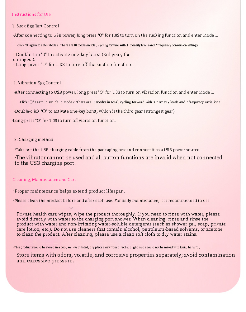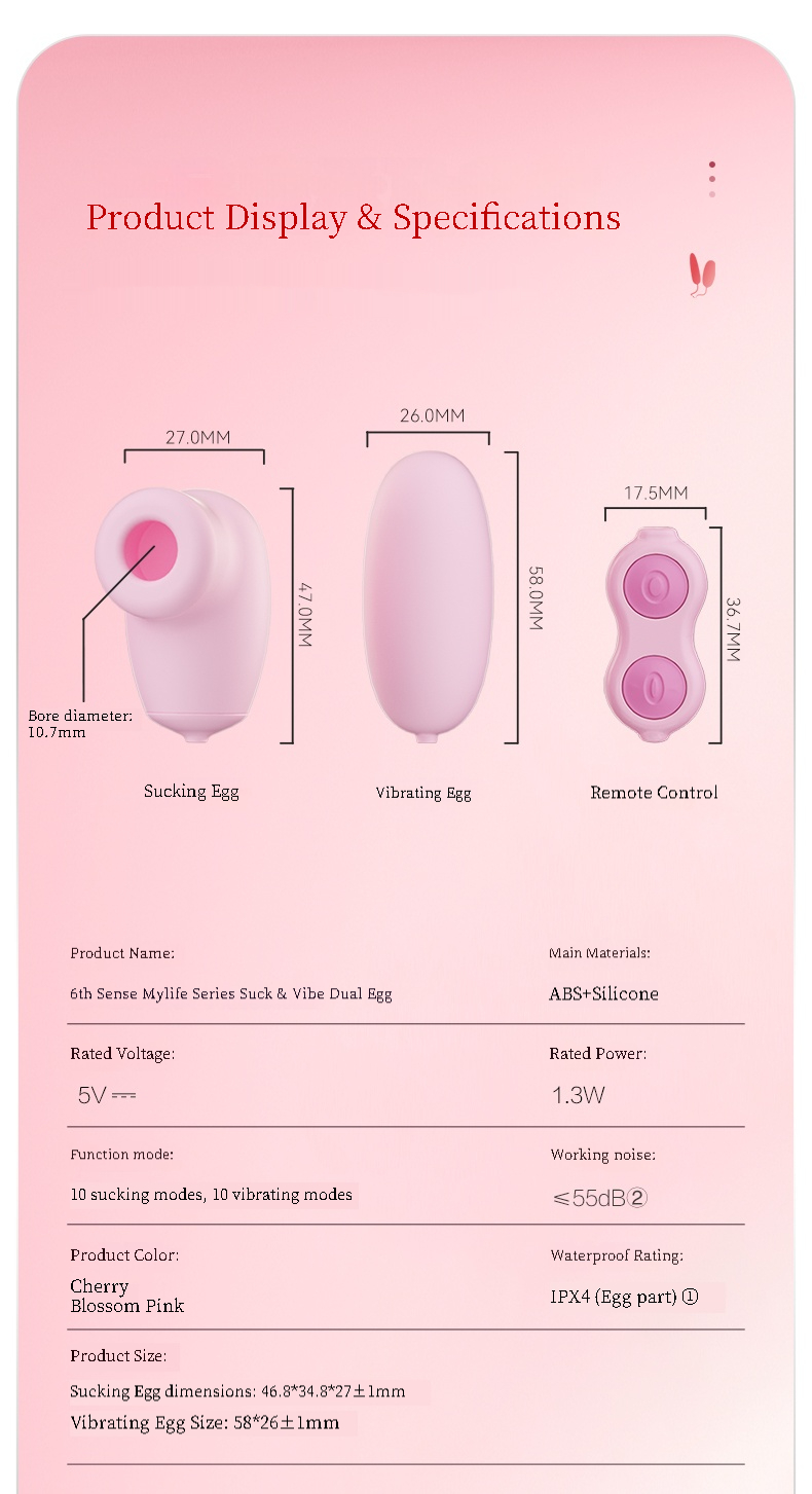 Skin-Friendly Silicone Material, IPX6 Waterproof, Silent Design: Made of skin-friendly silicone material, it feels soft and comfortable to the touch. IPX6 waterproof rating makes it easy to clean (rinse with water, do not immerse in water). The low-noise motor (≤47 decibels) ensures you enjoy private and worry-free moments.