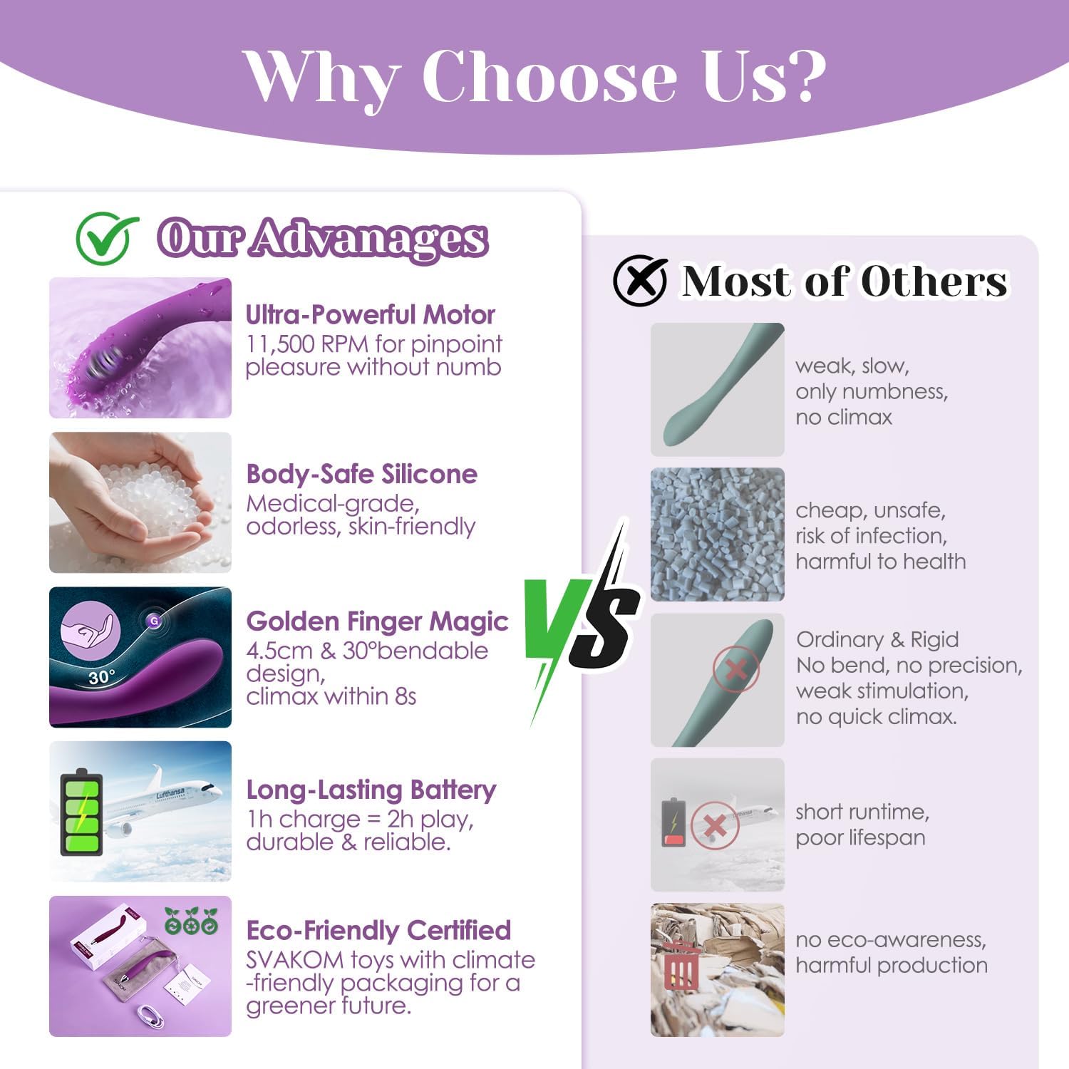 【Not Stretch the Vaginal by Suitable Size of Portable Squirting Vibrator】The average vagina size is 0.82-1.1inch wide while COCO’s head diameter is 0.99inch, no need worry about the vagina being stretched during use, suit for beginners and advanced users. With the 30° arch design, accuratly stimulate to get days and nights of thought big O. Carry with SVAKOM pouch, Put SVAKOM finger sex toy in your pocket, bag even as pocket vibrator whereverr you go. Over 18 years old can use adult sex toy