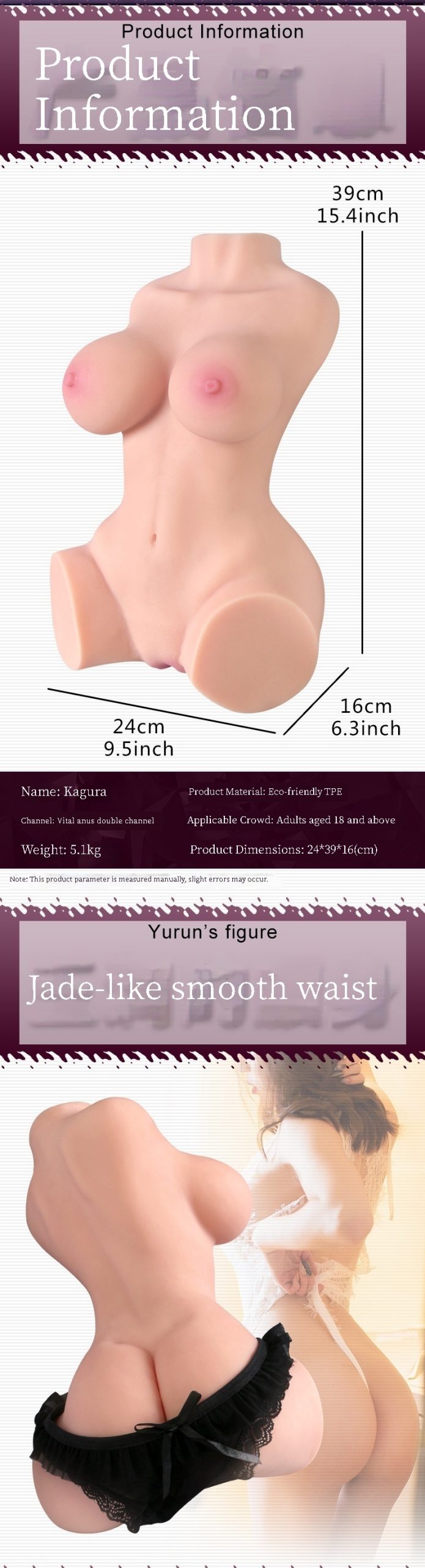 11-pound male sex doll torso, 3-in-1 realistic male masturbator, pocket-style vagina, E-cup breasts and perky buttocks, realistic female sex doll with textured vagina and anus, adult sex toy and male anal sex toy.
