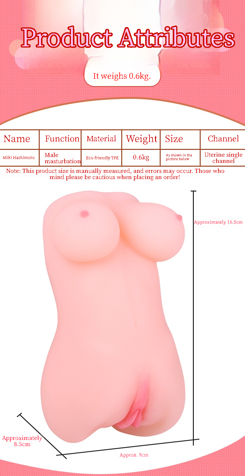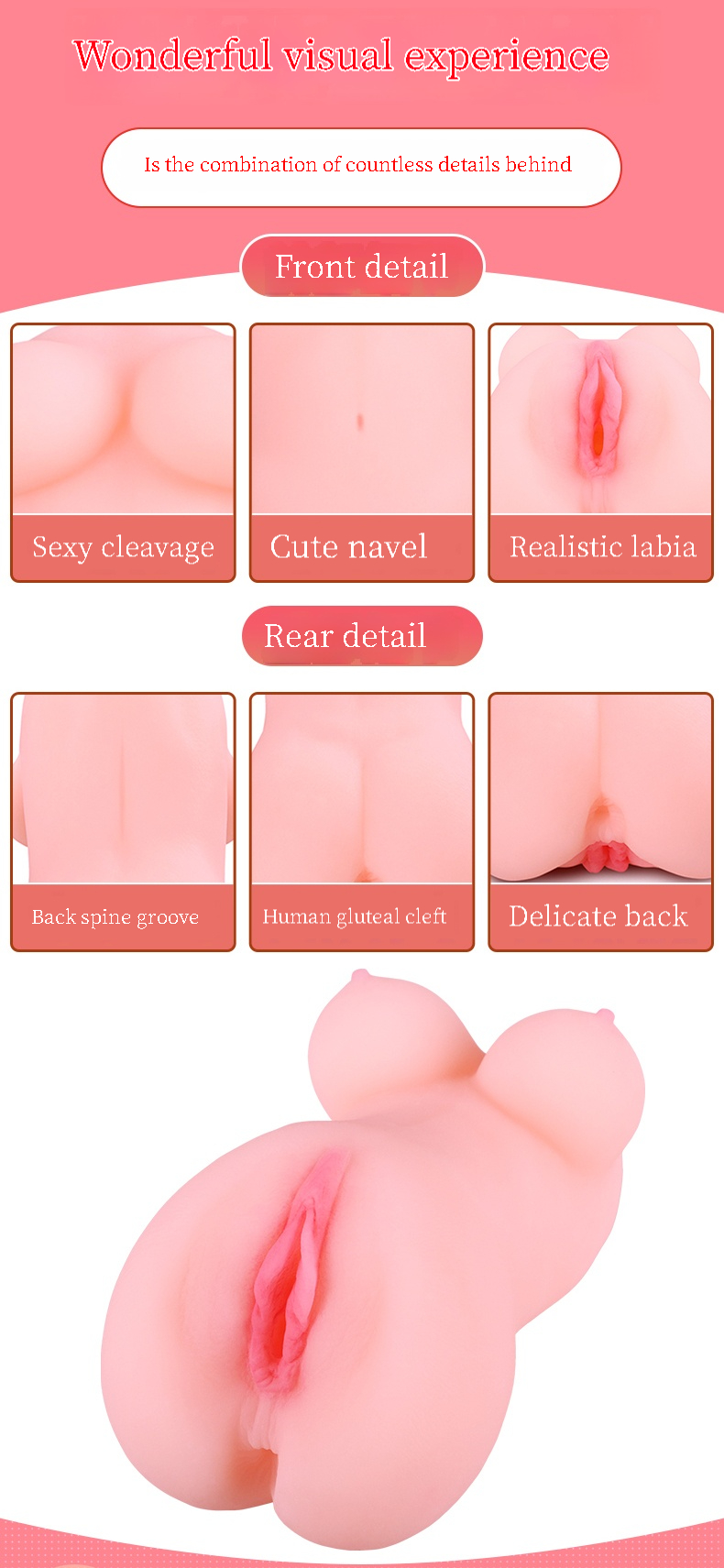- 【Mini Sex Doll】This compact mini sex doll features a lifelike vagina, a slender waist, and supple breasts. The torso design includes a unique single-channel structure that mimics a tight, realistic vaginal. The channel is reinforced with thick material to prevent damage during vigorous thrusting, allowing for unrestrained enjoyment. Additionally, the tightness of the vaginal grip can be adjusted by hand pressure, enabling users to control the intensity and timing of their climax with ease.