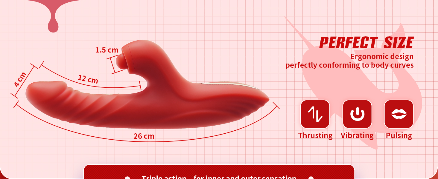 【4-in-1 Vibrator】This female vibrator combines powerful pulsation with suction, massaging any area. It offers 5 pulsation modes, 10 vibration modes, and 7 thrust modes, making it ideal for couples (beginners and experienced).