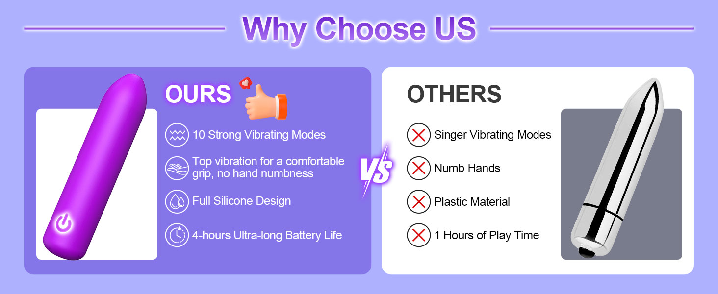 - 【No Feeling of Numb Hands】Many Bullet Vibrators have been known to lead to your hand numbness and even can’t hold it comfortably to use. We believe in keeping the ingenious internal structure to make the powerful motor is on the head instead of the middle, reducing the vibration of the bottom, which is why we’ve designed a full silicone bullet vibrator that feels more comfortable than ever.